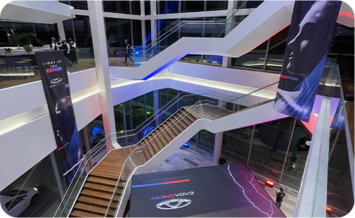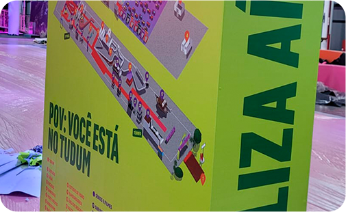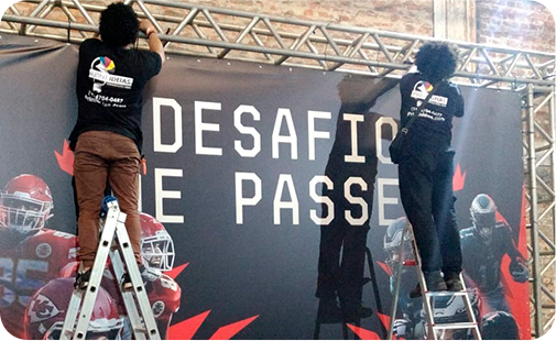 Produções ágeis e soluções visuais criativas que valorizam cada projeto. Lonas UV de até 5 metros, luminosos e materiais rígidos com qualidade técnica e cortes personalizados para dar destaque a eventos, ativações e feiras.